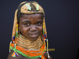 Mwila tribe girl with a vikeka necklace, Huila Province, Chibia, Angola