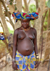 Pregnant Mucubal tribe woman wearing oyonduthi bra, Namibe Province, Virei, Angola