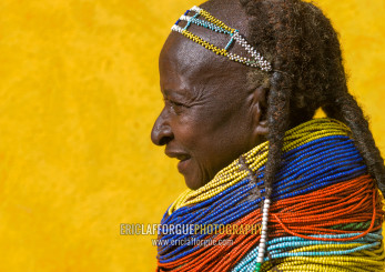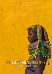 Side view of a Mumuhuila tribe woman, Huila Province, Chibia, Angola