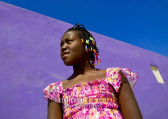 Girl In Front Of A Purple Wall In Namibe Town, Angola