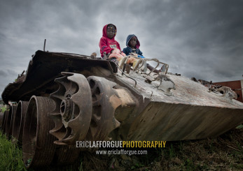 Kids On A Tank Wreck From Civil War, Angola