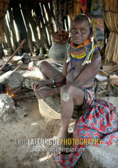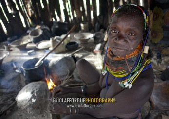 Old Mwila Woman Cooking In Her Hut, Chibia Area, Angola