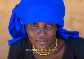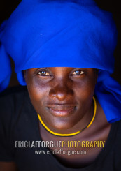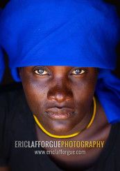 Cuepe tribe woman with a blue headwear, Cunene Province, Curoca, Angola
