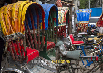 Parked decorated rickshaws, Dhaka Division, Dhaka, Bangladesh