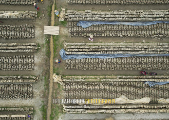 Aerial view of a brick factory, Sylhet Division, Bahubal, Bangladesh
