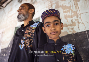 Portrait of bangladeshi father and boy, Rajshahi Division, Manda, Bangladesh