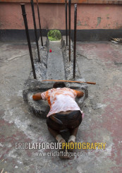 Hindu man praying at cremation site, Dhaka Division, Munshiganj Sadar, Bangladesh