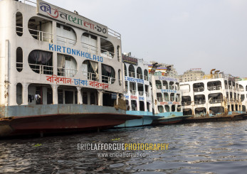 Anchored ferry vessels at the dockyard, Dhaka Division, Keraniganj, Bangladesh