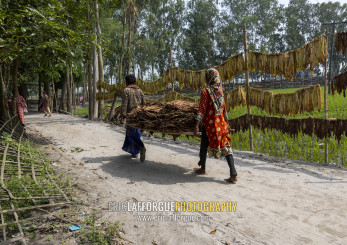 Bangladeshi couple carrying dried tobacco leaves, Rangpur Division, Rangpur, Bangladesh
