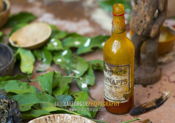 Benin, West Africa, Bonhicon, schnapps bottle used during a voodoo ceremony