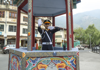 A traffic policeman at a circle road, Chang Gewog, Thimphu, Bhutan
