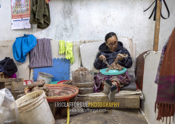 Bhutanese woman making paper using traditional methods, Chang Gewog, Thimphu, Bhutan