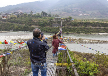 Punakha Suspension Bridge with prayer flags, Punakha dzongkhag, Punakha, Bhutan