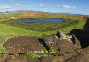 Lying moai over rano raraku lake, Easter Island, Hanga Roa, Chile