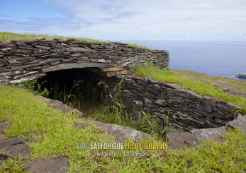 Restored houses in a ceremonial village, Easter Island, Orongo, Chile