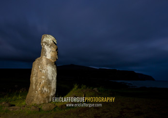Monolithic Moai Statue At Night At Ahu Tongariki, Easter Island, Chile