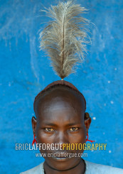 Hamer man with feather on his head, Dimeka, Omo valley, Ethiopia