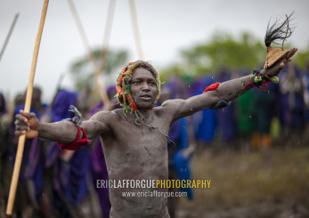 Donga stick fighter in Surma tribe, Omo valley, Kibish, Ethiopia
