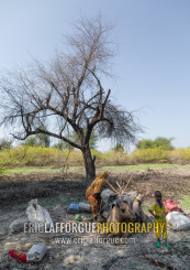 Camel caravan stopping to make a camp, Afar region, Semera, Ethiopia