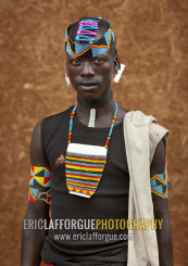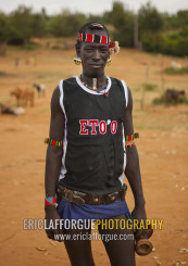 Fashionable tsemay tribe man posing in key afer, Omo valley, Ethiopia