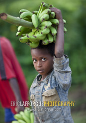 Young Boy With Green Bananas Bunch On His Head Ethiopia