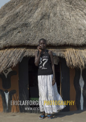 Nuer Tribe Woman Calling On A Mobile Phone, Gambela, Ethiopia