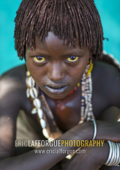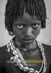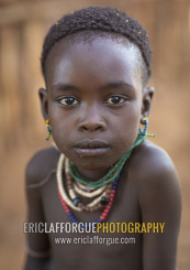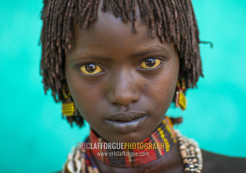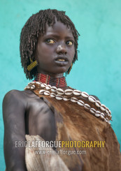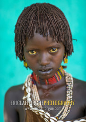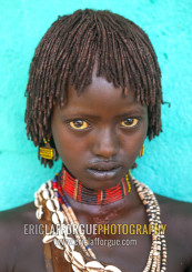 Litte Hamer Girl Tribe In Traditional Outfit, Turmi, Omo Valley, Ethiopia