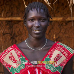 Majang Tribe Woman With A Liverpool Football Club Scarf, Kobown, Ethiopia