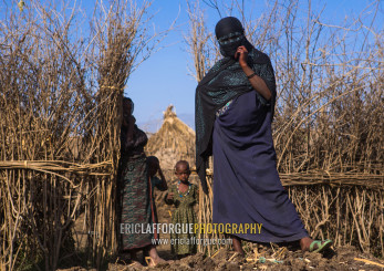 Oromo family in front of their hut, Amhara region, Artuma, Ethiopia