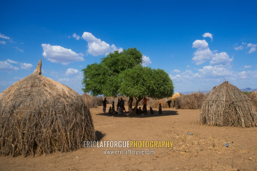 Traditional nyangatom and toposa tribes village, Omo valley, Kangate, Ethiopia