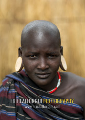 Mursi tribe woman with enlarged earlobes, Omo valley, Mago park, Ethiopia