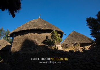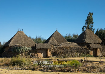 Stone houses village in the highlands, Amhara region, Debre Birhan, Ethiopia
