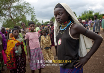 Veiled dizi girl, Tum market, Omo valley, Ethiopia