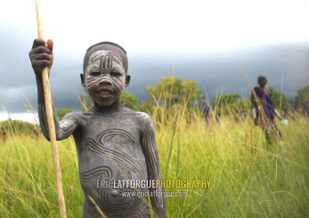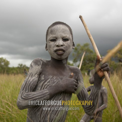 Suri Boy Imitating The Adult Warriors, Omo Valley, Ethiopia