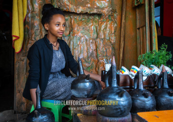 Ethiopian woman preparing coffee in a bar, Harari region, Harar, Ethiopia