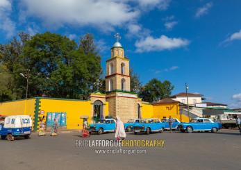 Peugeot 404 taxis in Medhane Alem cathedral, Harari region, Harar, Ethiopia