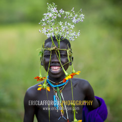 Surma Boy Wearing Flower Ornaments, Kibbish Village, Omo Valley, Ethiopia