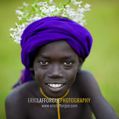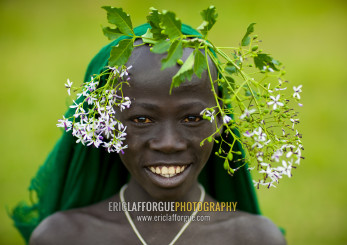 Surma Boy Wearing Flower Ornaments, Kibbish Village, Omo Valley, Ethiopia