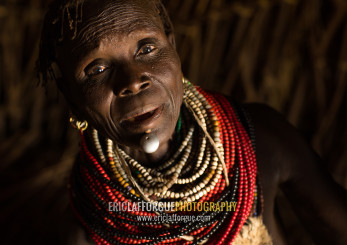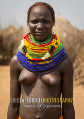 Nyangatom tribe woman with a huge necklace, Omo Valley, Kangate, Ethiopia