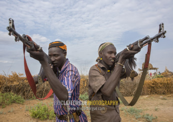 Dassanech Men With Their Guns, Omorate, Omo Valley, Ethiopia