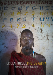 Mursi Tribe Woman In A School, Mago Park, Omo Valley, Ethiopia