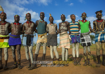 Bashada Tribe Warriors With Body Paintings, Dimeka, Omo Valley, Ethiopia