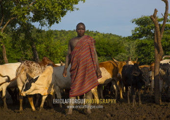 Bodi Tribe Man And Cattle, Hana Mursi, Omo Valley, Ethiopia
