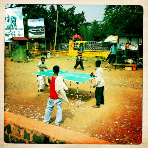 Young men playing snooker pool, Omo valley, Kangate, Ethiopia