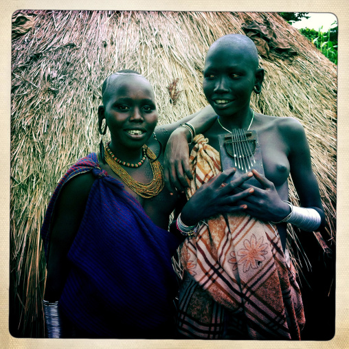 Naked Breasts Of Karo Woman With Beaded Necklaces And Key Pendant Ethiopia
