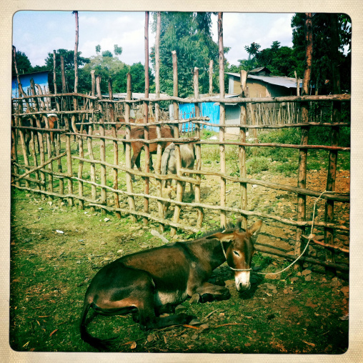 Village with tukuls in the highlands, Oromia, Sheno, Ethiopia