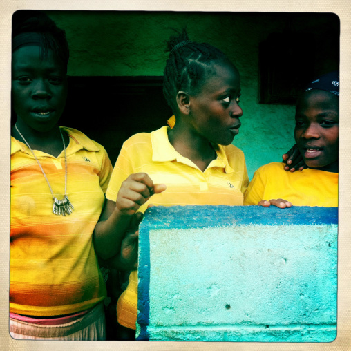Suri tribe girls doing gold panning in a river, Omo valley, Kibish, Ethiopia