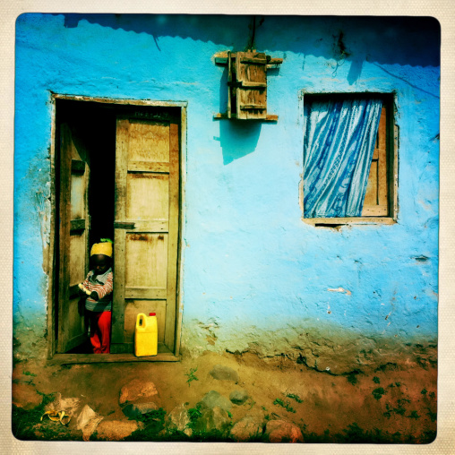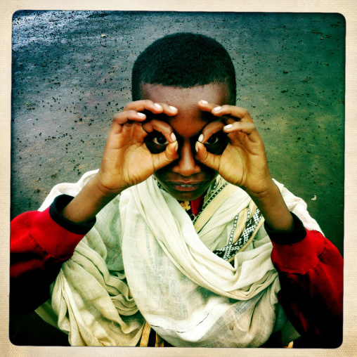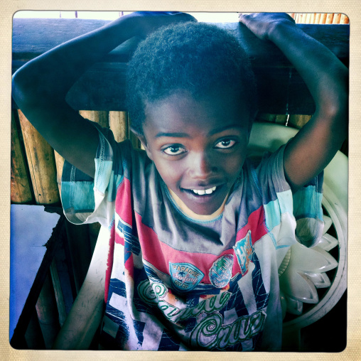 Boy working in a mill with flour on his face, Bati, Amhara region, Ethiopia
