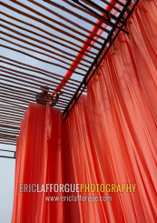 Indian workers drying orange sarees, Rajasthan, Sanganer, India