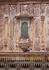 Old carved balcony of a haveli, Rajasthan, Jodhpur, India